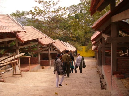 Khung bê tông mái ngói trên đường từ chùa Giải Oan xuống suối