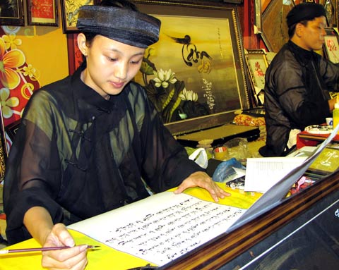 | Nhiều người xem và đợi mua chữ ông đồ |