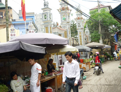| Cổng chùa và đình luôn bị chợ cóc bịt kín. |