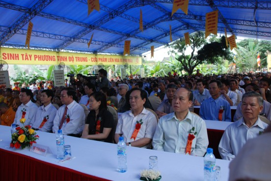 Về phía quan khách có ông Bùi Hữu Dược - Vụ trưởng vụ Phật giáo Ban tôn giáo chính phủ, ông Lê Văn Cửu – Phó giám đốc sở nội vụ - trưởng Ban tôn giáo Thành phố Hà Nội , Bà Nguyễn Thị Thảo – Phó chủ tịch UBND quận Tây Hồ cùng lãnh đạo các cơ quan chức năng TW đến địa phương, HĐND, UBND, MTTQ xã Mỹ Thắng, huyện Mỹ Lộc tỉnh Nam Định và đông đảo bà con Phật tử các tỉnh thành về tham dự.