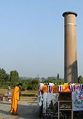 Khi chúng tôi tới đây quan sát thì thấy cột trụ đá có độ cao khoảng từ 5 đến 6 mét, đường kính khoảng nửa mét, được bao quanh bởi hàng rào sắt. Hiện vòng rào sắt cũng bị thời gian làm rỉ sét gần hết. Bên hàng rào, các Phật tử theo truyền thống Phật giáo Tây Tạng đã khoác lên những lá cờ phướn nhiều màu rực rỡ, làm tôn thêm vẻ bình dị của chiếc cột trụ đá nhiều ngàn năm tuổi. Trên đầu cột trụ đá không có hình gì cả. Trên thân trụ có khắc 5 hàng cổ ngữ Brahmi và bên cạnh, phía bên dưới có tấm bia ghi bằng ba ngôn ngữ: Brahmi, Anh và Pali hay Ấn ngữ cho du khách xem: (xem hình 06, 07 vả 08)